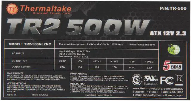 Peace of Mind Warranty –All Thermaltake power supplies, not just the premium models, carry industry's most trusted 5 Years Warranty.