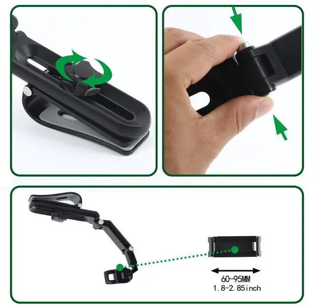 Flexibility: Sun visor phone holder comes with a 360-degree ball joint and adjustable telescopic arms that adjust the phone to any ideal angle without hindering your field of view. A perfect assistant for drivers.