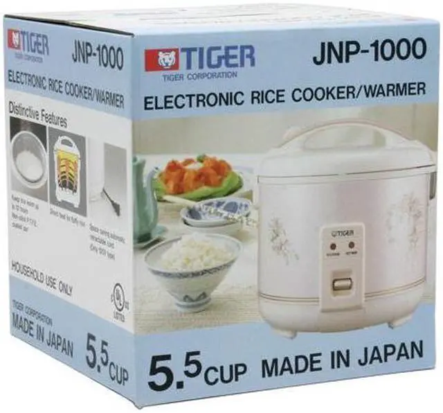 | Features | Electronic control heating makes better rice. High quality double wall construction with locking top to seal in flavor. Special keep-warm heating elements (in the lid and in body) keep rice warm up to 12 hours without drying or burning the rice. Includes measuring cup, spatula, cooking and steamer pans - everything necessary to make tasty rice dishes and other foods. Water level marks on inner surface of ricecooking bowl insure the correct amount of water is added. Indicator lights show whether cooking or warming mode is in use. Non-stick PTFE coated rice cooking and steamer pans make clean-up easy. Built in carrying handle for safe and easy moving. Retractable power cord reduces counter top clutter and stays attached for storage. |