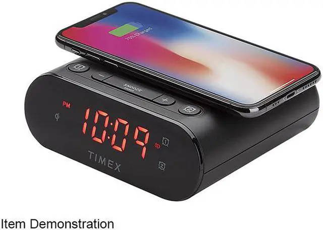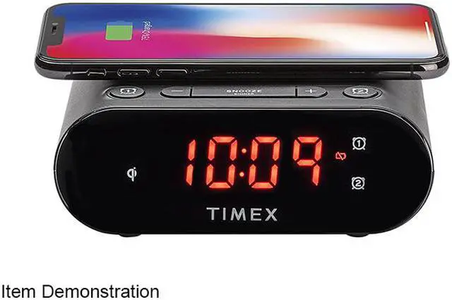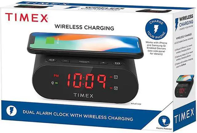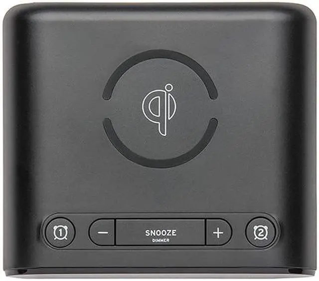 | Features | Large 0.7" LED DISPLAY ALARM CLOCK WITH DIMMER SETTING.You can see the time digits clearly from across your bedroom. Adjust the dimmer setting from High or Low to a comfortable brightness. WIRELESS CHARGING CLOCK: Effortlessly charge smartphones, rechargeable pod cases and more on the Qi-enabled surface of this wireless charging alarm clock. Wireless charging LED indicator indicates mobile device is charging DUAL ALARMS FOR EVERY SCHEDULE: Two alarm settings allow for easy weekday versus weekend planning. The alarm clock also includes a wide easy to press snooze button for slower mornings. BATTERY BACKUP: A convenient battery backup ensures you never miss an alarm due to a power outage or need to reset the clock and its settings. CLOCK DISPLAY DIMMER- Enjoy a dimmable clock display with Hi/Lo modes |