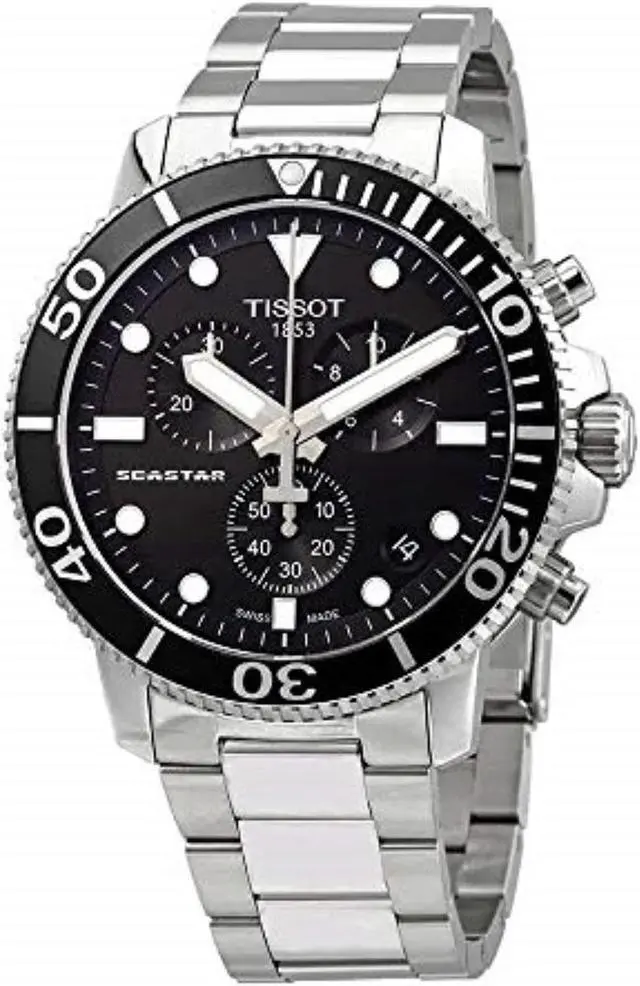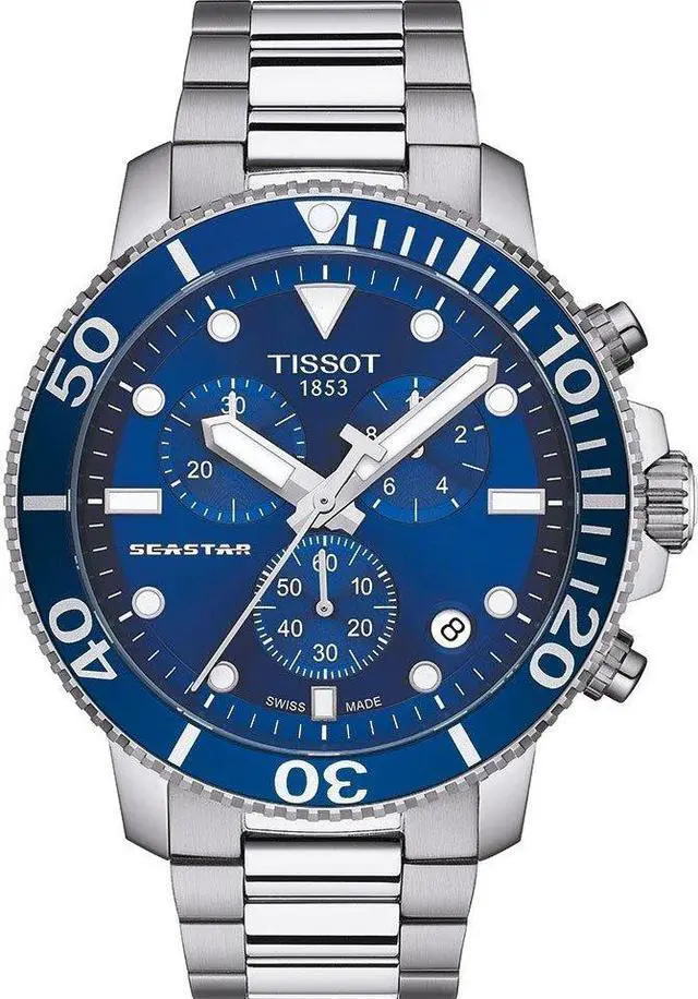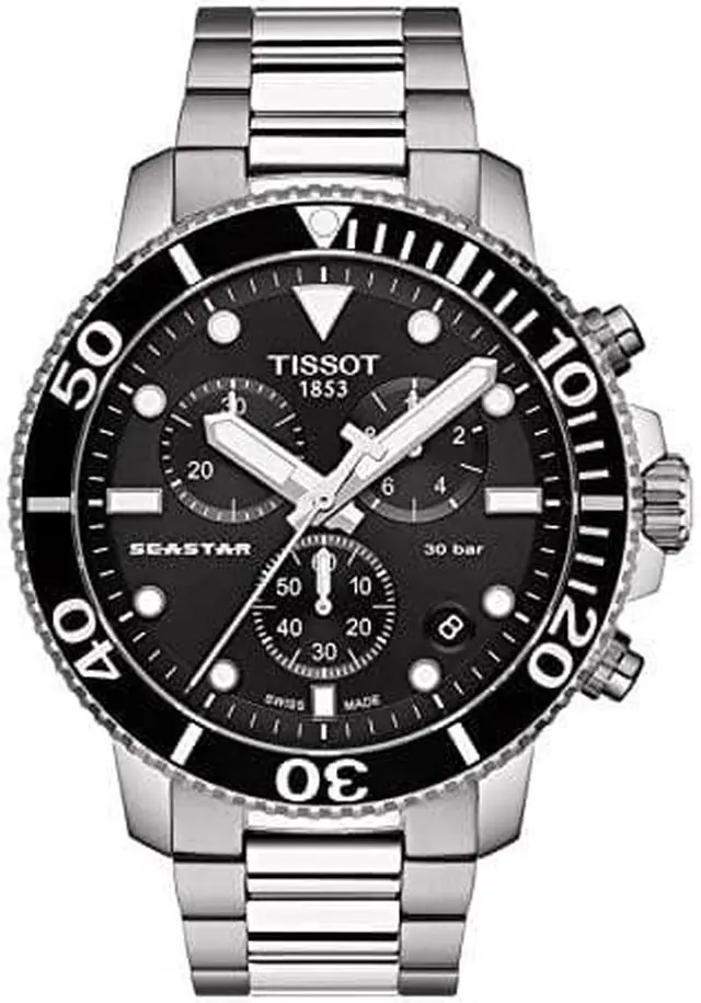 The Tissot Seastar 1000 is the ultimate watersport watch, with its high water-resistance up to a pressure of 30 bar (300 m/1000 ft), screw-down crown and caseback as well as its unidirectional ceramic bezel.