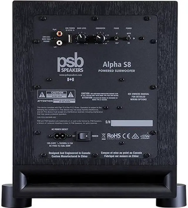 | Features | Rear Mounted Volume Crossover Controls Phase Switch LFE Settings Low Level Input AutoOn/Standby Switch Gold-plated RCAs USB Power Jack for RT100 wireless Rubber bumpers and spikes |