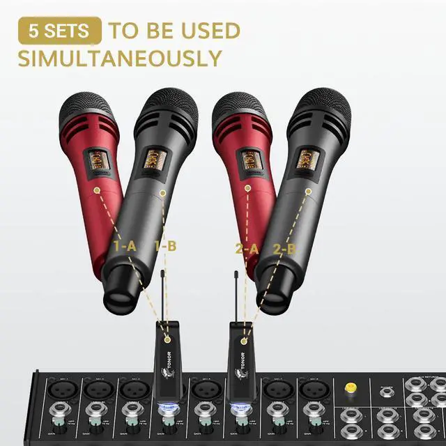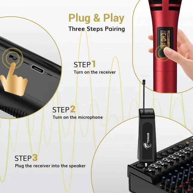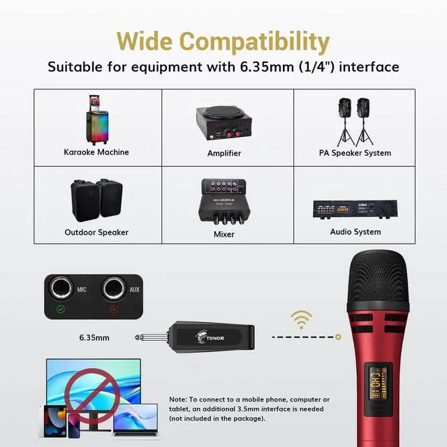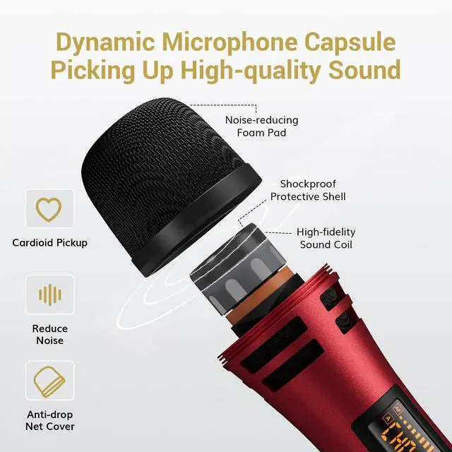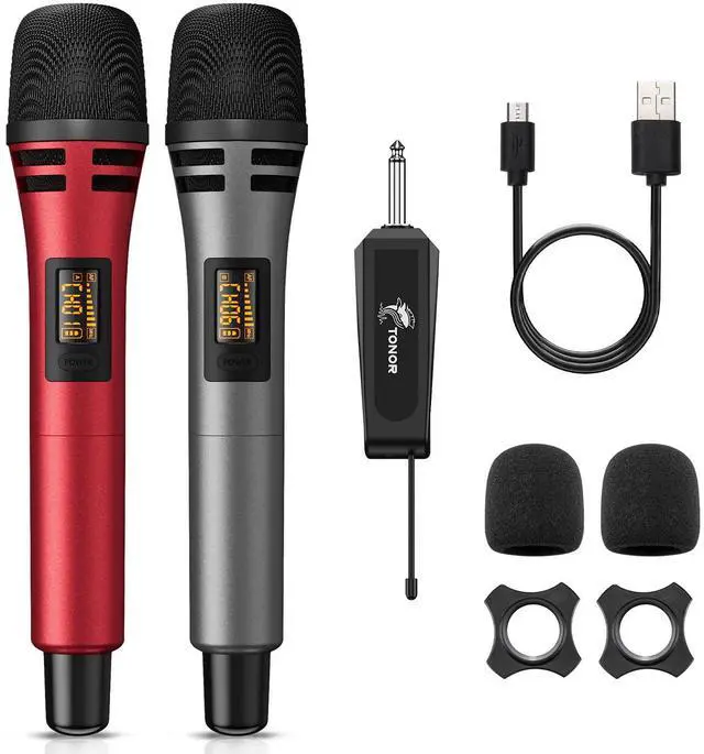 TONOR Wireless Microphone, UHF Metal Cordless Handheld Mic System with Receiver, for Karaoke, 200ft Red