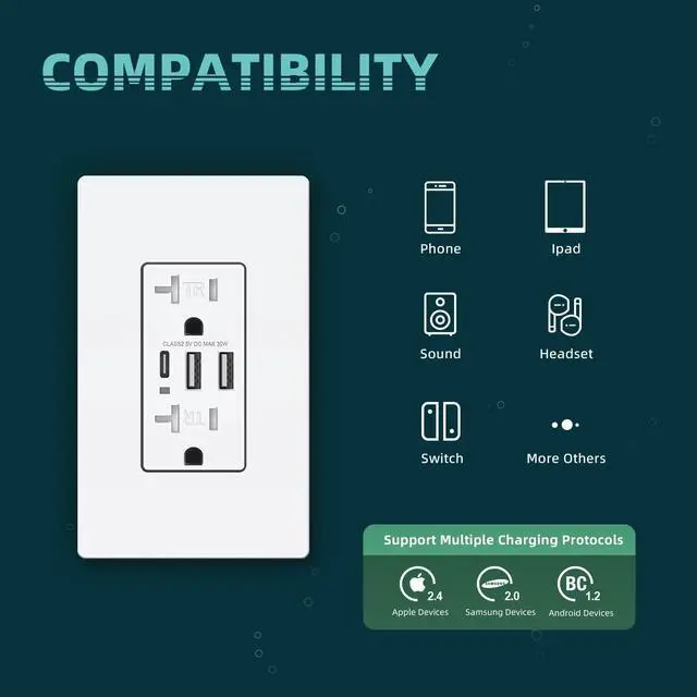 ![]() 6.0Amp USB Outlet | ![]() 6.0Amp USB Outlet | ![]() PD 65W PD USB Outlet | ![]() PD 65W PD USB Outlet | ![]() PD 30W USB Outlet | ![]() 4.8Amp USB Outlet | ![]() 4.8Amp USB Outlet |