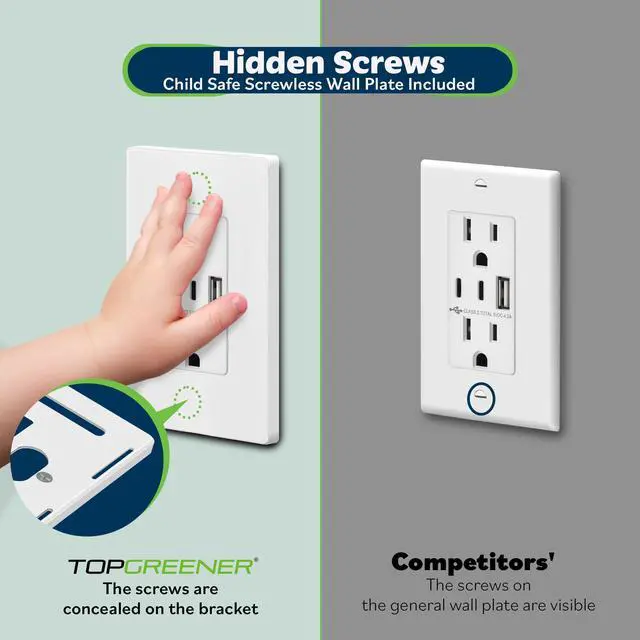 TOPGREENER USB-C Port 15 Amp Wall Outlet