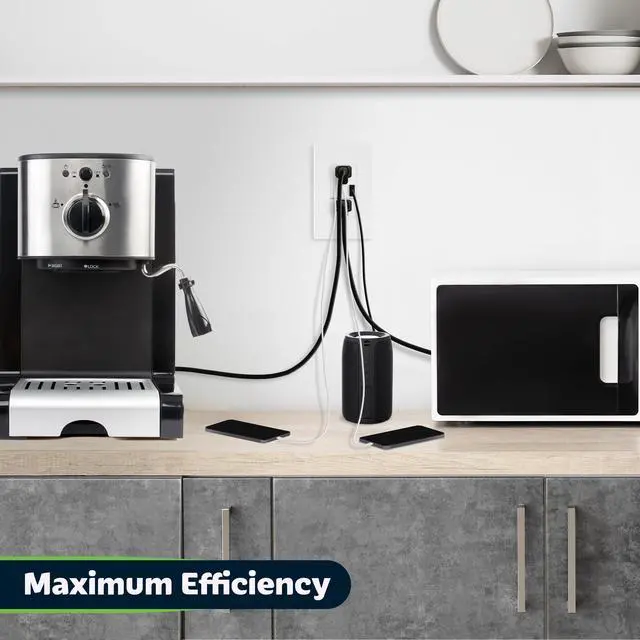 This home charging outlet is rated to deliver up to 15A of power and it is perfect for kitchen countertops, bedroom nightstands, living rooms, and more.