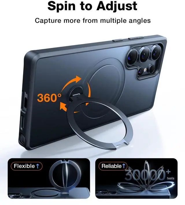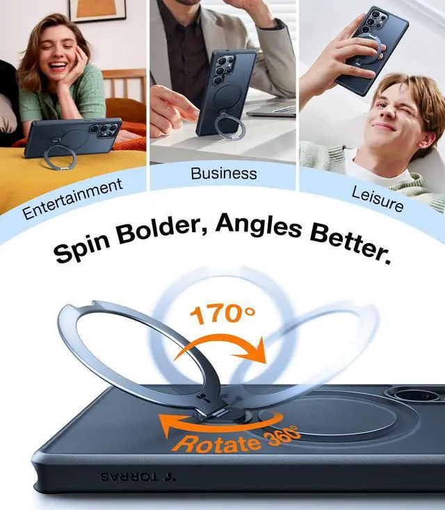 TORRAS 360° Spin Magnetic Stand for Samsung Galaxy S25 Ultra Case, Fit for Magsafe, Military Grade Slim Protective S25 Ultra Case with Kickstand & Ring Holder, Ostand Spin, Translucent Forested Black