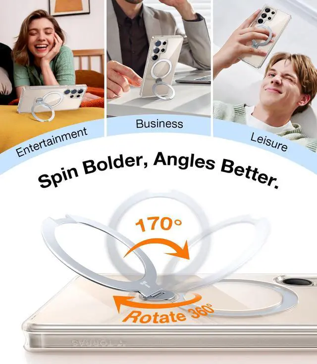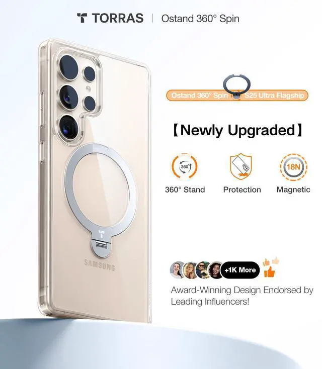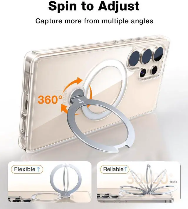 TORRAS 360° Spin Magnetic Stand for Samsung Galaxy S25 Ultra Case, Fit for Magsafe, Military Grade Slim Protective S25 Ultra Case with Kickstand & Ring Holder, Ostand Spin, Clear