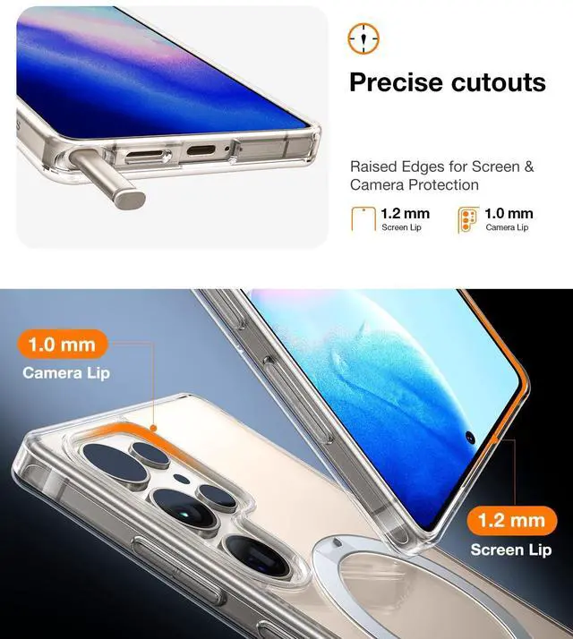 - [Protective to Date of 12FT] Gone are the days of thick, bulky cases. This shockproof Galaxy S25 Ultra case fits like a glove, offering a sleek profile. With military-grade protection certification (MIL-STD 810G-516.6), it absorbs 98% of the impact force, and the 18 built-in airbags increase protection by 40%. This case for Samsung S25 Ultra also features raised edges around the cameras and screen, providing meticulous protection for unbeatable drop resistance