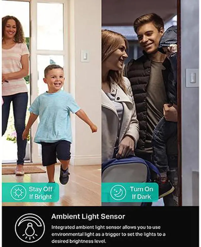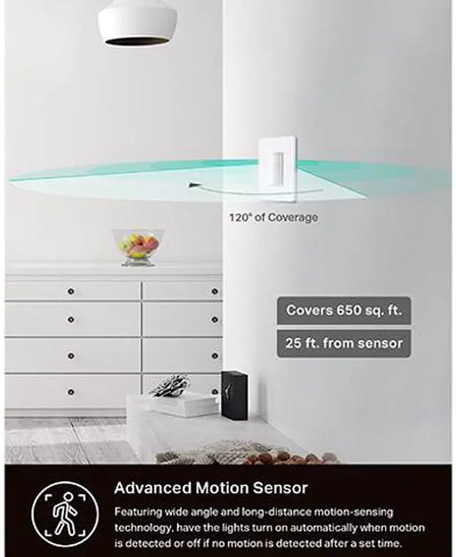 [Advanced Motion Detection] Completely hands-free and smart operation of your connected lights. You can set this switch to automatically turn on the light when motion is detected and turn off after a preset time. Ideal for areas such as bedrooms, hallways and restrooms where hands-free operation is ideal. [Daylight Detection] Smart ambient light detection will sense daylight and prevent lights from turning on during the day. [Dimming and Smart Mode] Set different light triggers and brightness levels based on your routine for effortless control. Adjust the brightness of your lights from 1% - 100%. [Voice & App Control] Manage your device with voice commands via Amazon Alexa, Google Assistant, or Samsung SmartThings. Hands-free operation of your lights from anywhere through the free Kasa app. [Away Mode] Automatically turns devices on and off at different times to give the appearance that someone is home. [Trusted & Reliable] UL certified, meaning rigorous testing has been done for safety and certified by a third party laboratory. Supports incandescent bulbs up to 300W or dimmable LED bulbs up to 150W. Kasa is trusted by over 7 million users worldwide. [Kasa Smart Action] A part of the Kasa Smart Ecosystem, the switch works with other Kasa devices, so you can set smart actions, and groupings with your other Kasa devices. [Guided Setup] As with all Kasa products, you can follow the easy to use Kasa app to guide you through the install process. This product requires a neutral wire for installation. If you are not familiar with electrical wiring, we always recommend using a licensed electrician to help with the installation.