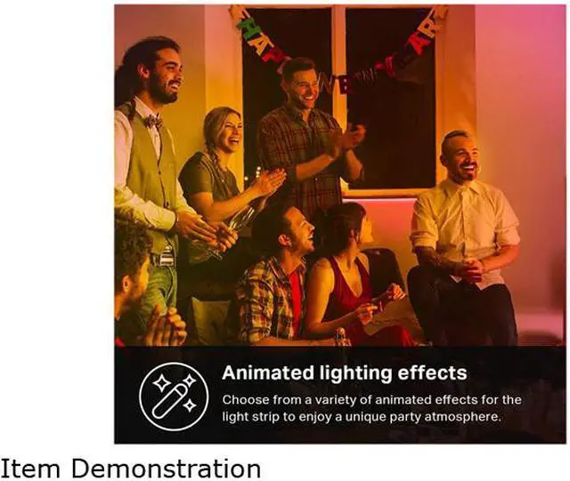 [Animated lighting effects] The Kasa Smart light strip features advanced animated lighting effects, with many different preset effects to choose from.