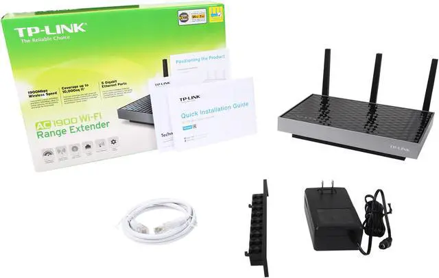 AC1900 Dual Band Wireless Range Extender, Desktop, Broadcom, 1300Mbps at 5Ghz + 600Mbps at 2.4Ghz, 802.11ac/a/b/g/n, 5 10/100/1000M LAN ,Ranger Extender button, Range extender mode?with 3 detachable Antennas