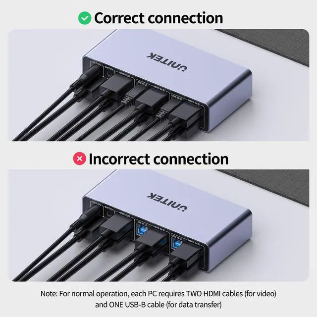HDMI 2 IN 2 OUT KVM Switch Compatible with HDMI video sources only.The Unitek HDMI KVM Switch lets you connect two computers to dual monitor and 3 USB 3.0 devices, such as a keyboard, mouse, hard drives, U disk, and printer. This KVM switch is also compatible with a wide range of input devices, including PCs and even PS4, and supports multiple operating systems like Windows 7/8/10/11/Vista/XP, Linux, Mac, and more.Mic and headset port support more function.