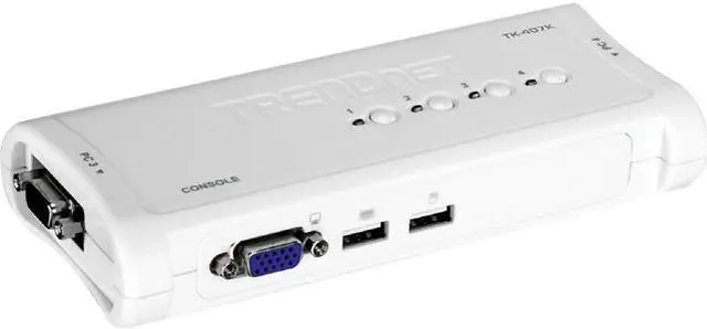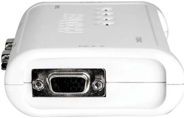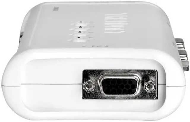 The 4-Port USB KVM Switch lets you manage four PC's with just one set of keyboard, monitor, and mouse. Switch between four PC's with a simple press of a button! Separate sets of KVM cables are included with the KVM Switch, so users can start controlling 4 PC's instantly. The KVM cables also provide power to the KVM Switch, eliminating the need for a power adapter. Hot Key operations provide immediate access to features such as computer switching, and auto-scanning. With its Hot-Plug, and Audible Feedback, the 4-Port USB KVM Switch is the perfect choice for managing multiple PC's.