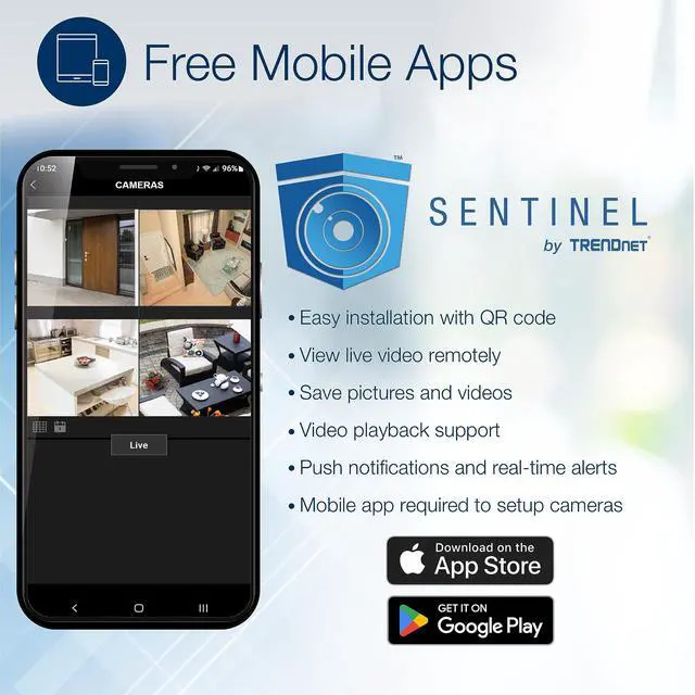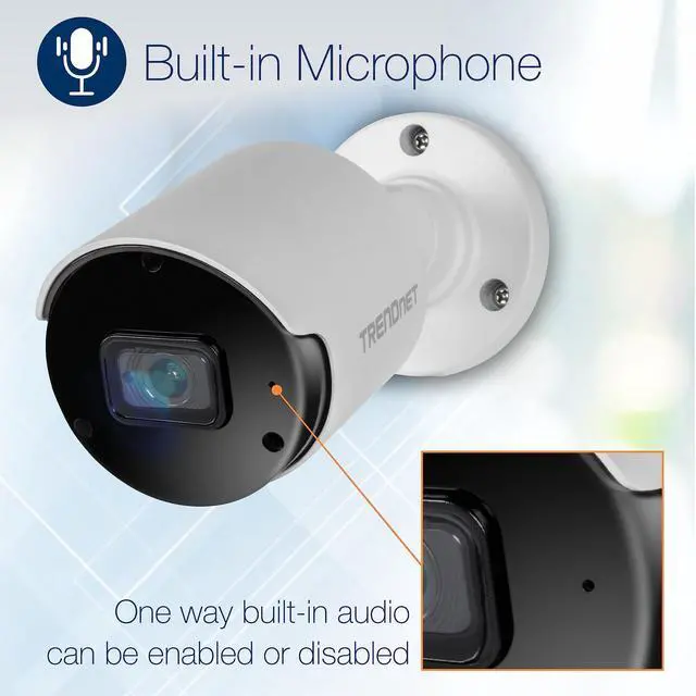 TRENDnets Indoor/Outdoor 5MP H. 265 PoE IR Bullet Network Camera, model TV-IP1514PI, provides day and night surveillance with a night vision range of up to 30 meters (98 ft. ). This bullet network camera delivers year-round surveillance with an IP66 weather rated housing to withstand outdoor environments. Record up to 5MP HD video at 20fps in a space saving H. 265 compression format. Easily view live video from the 5MP PoE camera on your mobile device using our free Sentinel mobile app, or on your PC with our free View Manager desktop camera video management software.