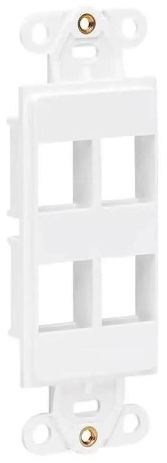 This vertical-style center insert provides a clean, simple method for your premise wiring applications, including home theater (audio/video), VoIP phones (voice) and Ethernet (data). Any type of keystone jack, including those used in HDMI, DisplayPort, RCA, USB and Cat5e/6/6a installations, snaps easily into the cutouts for quick cable connection.