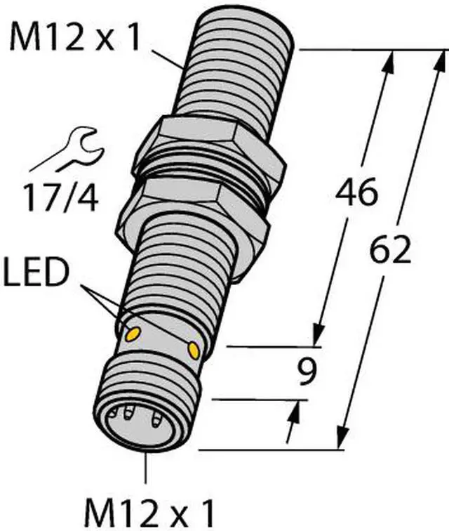 PNP Order number: 4606507 M12 × 1 threaded barrel Long version Chrome-plated brass DC 4-wire, 10…30 VDC Changeover contact, PNP output M12 x 1 male connector EAN 4047101098426 eCl@ss-Code (V 5.1.