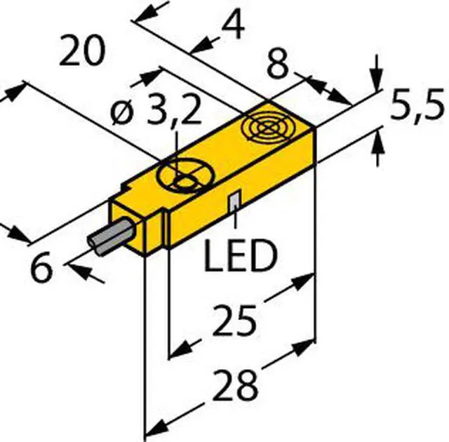 PNP Order number: 1613000 Rectangular, height 5.5 mm Active face on top Plastic, PP DC 3-wire, 10…30 VDC NO contact, PNP output Cable connection Country of origin CH Weight 30 g Technical Data Design Rectangular Construction size Rectangular, Q5, 5, 28 x 8 x 5.5 mm Rated switching distance 2 Operating voltage DC Switching element function NO contact Output function PNP Electrical connection Cables Housing material Plastic Housing quality PP-GF20 Mounting Flush