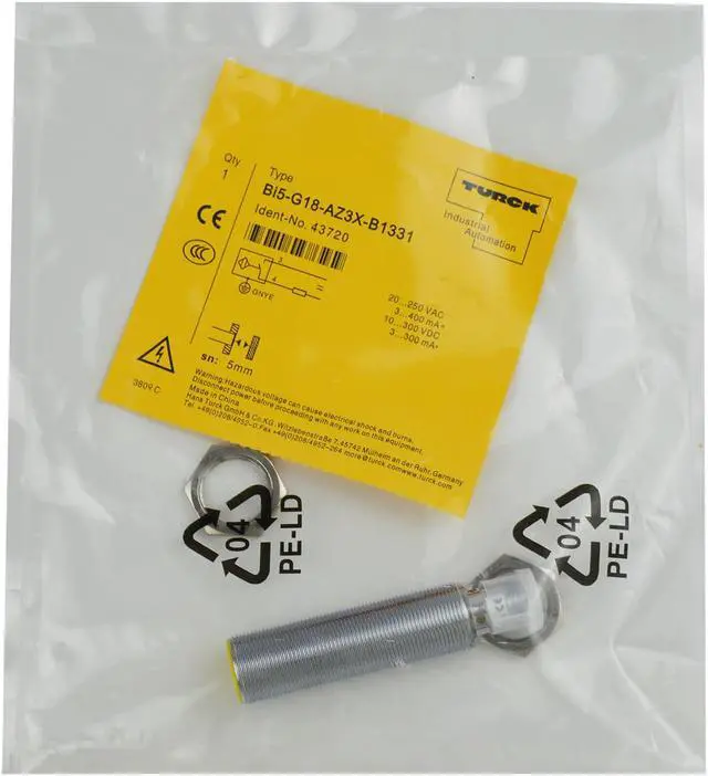 Order number: 43720 Threaded barrel, M18 x 1 Chrome-plated brass AC 2-wire, 20250 VAC DC 2-wire, 10300 VDC NO contact 7/8" connector Country of origin None Weight 114 g Technical Data Design Threaded barrel Construction size Threaded barrel, M18 × 1 Rated switching distance 5 Operating voltage AC/DC Switching element function NO contact Electrical connection Connector Connector type 7/8? Housing material Metal Housing quality CuZn Housing surface Chrome-plated Mounting Flush