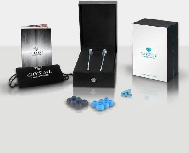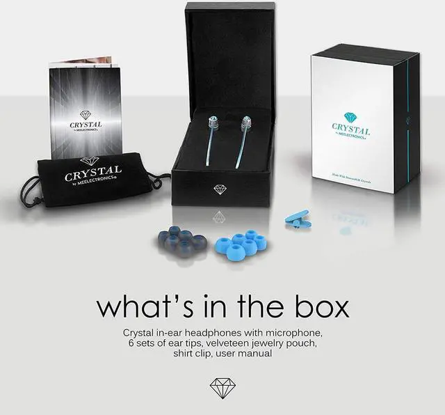 Presented in a luxurious jewelry box, the Crystal Earphones by MEElectronics are the perfect gift to dazzle a friend or yourself.