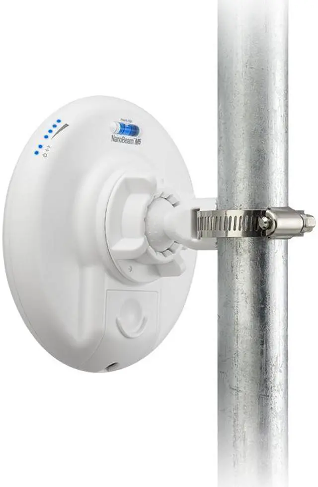 The NanoBeam® mounts to a variety of surfaces including poles or walls, and offers the freedom of three-axis alignment. No screws are required for pole-mounting, and only a single wall screw (not included) is required for wall-mounting.