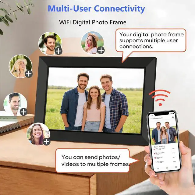 User-friendly interface design makes it easy to use for the elderly or kids. Just plug in, tap the touch screen to log into your WiFi (Only works with 2.4 GHz), then you can add the picture frame by the code. Also can share your Frame Code with friends or families. please keep your digital frame connected to WiFi to receive photos or videos anywhere and anytime