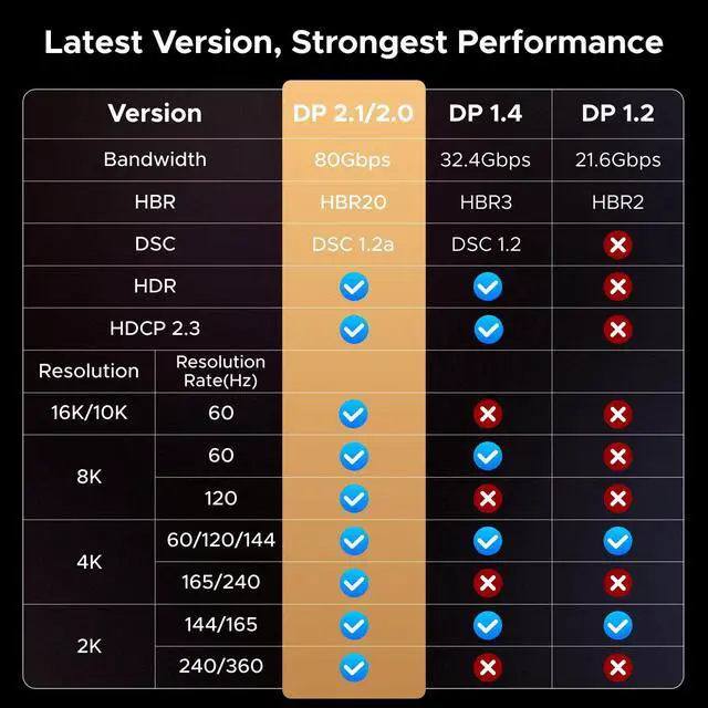 | DP 2.1 | DP 1.4 HDMI 2.1 | DP 1.4 HDMI 2.1 | DP 1.2 | HDMI 2.1 | DP 2.0 | DP 1.4 |