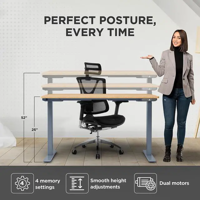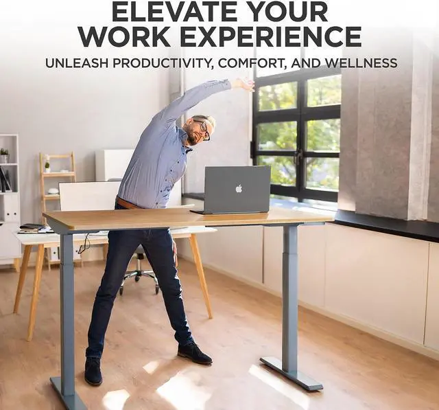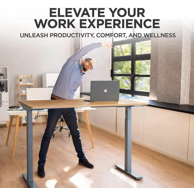 • 60 inch Electric Sit and Stand Desk - Stunning 60x30 inch single piece bamboo desktop has an impeccable appearance and looks amazing as a work from home desk, standup desk, or height adjustable standing desk.