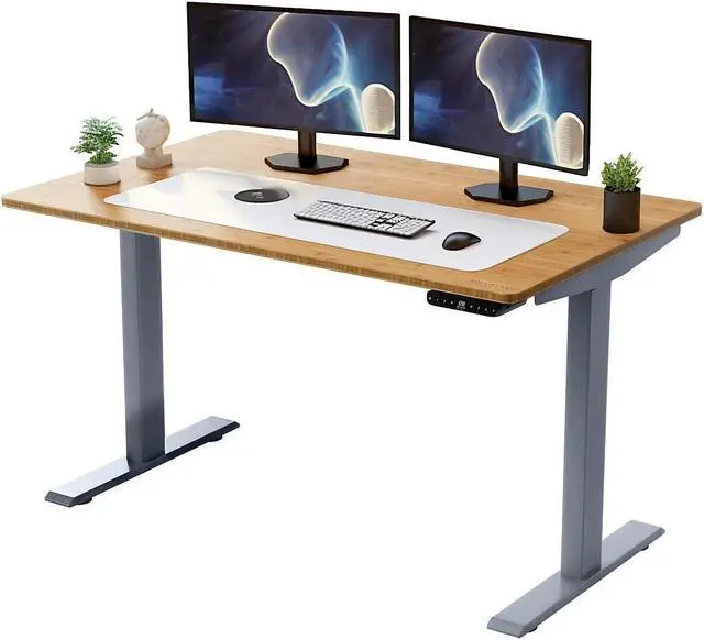 - Complete Electric Height Adjustable Standing Desk with Solid Bamboo Desktop.