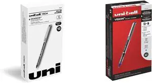 uni-ball VISION Rollerball Pens - Fine 0.7mm Black (12 Pack) + Fine 0.7mm Blue (60134)