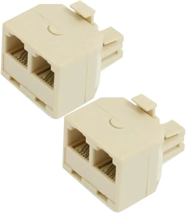 RJ11 Female 1 to 2 Connector is used for joining two telephone with RJ11 cable to one single phone line. Allow for the joining of two short cables in order to extend the length of your need without buying an extra one. Great for phone network testing or other possible phone wiring solution. KEY_TAB