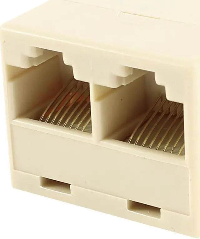 Beige plastic female to female connector RJ45 8P8C ADSL Splitter.
