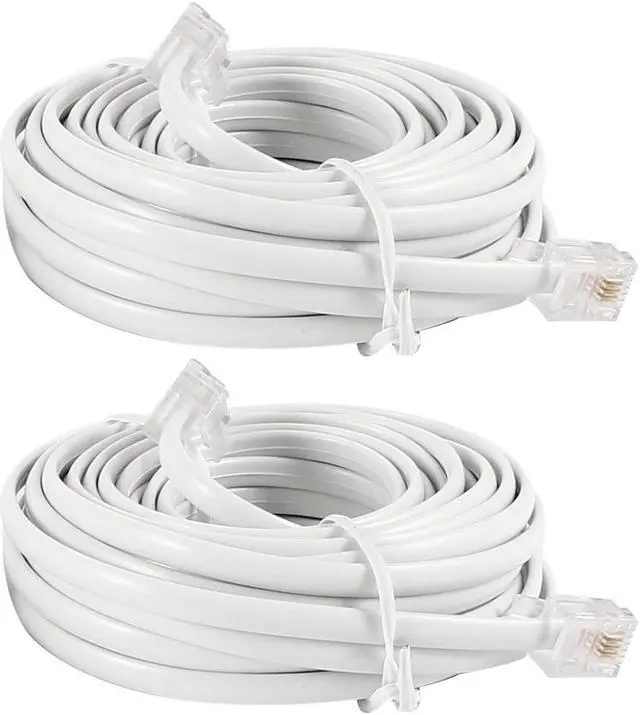 Unique Bargains 2 x White RJ11 Male to Male M/M Adapter Coupler Phone Extenstion Cable Cord 6M