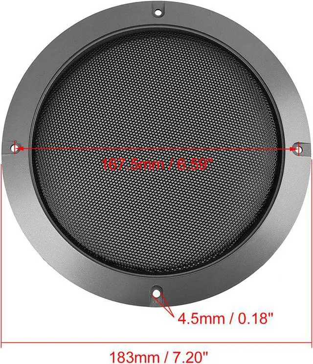 The screw hole center distance is 6.5", please confirm the screw hole center distance of your speaker before buying. Inner Diameter: 14.2cm / 5.59"; Outer Diameter: 18.3cm / 7.20"; Adjacent Screws Holes Center Spacing: 115mm / 4.53"; Diagonal Screws Holes Center Spacing: 167.5mm / 6.59"