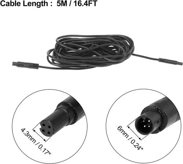 4 Pin 16.4ft 5m Backup Camera Extension Cable Dash Camera Cord Wires Car Rear View Camera