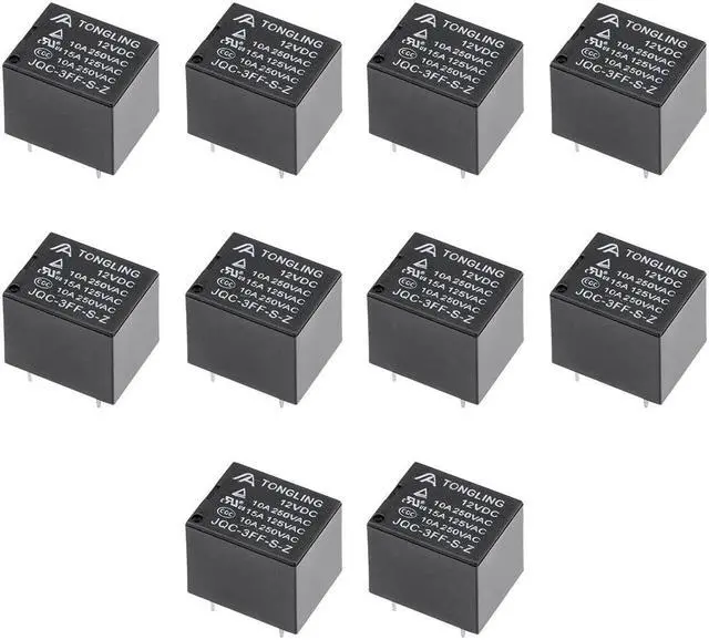 10Pcs JQC-3FF-S-Z DC 12V Coil SPDT 5Pin PCB Electromagnetic Power Relay.