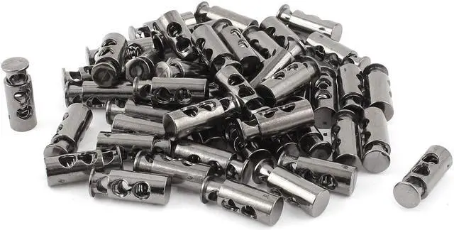 Unique Bargains 50 Pcs Gray Spring Loaded 5mm Dia Dual Holes Cord Locks Stoppers Toggles