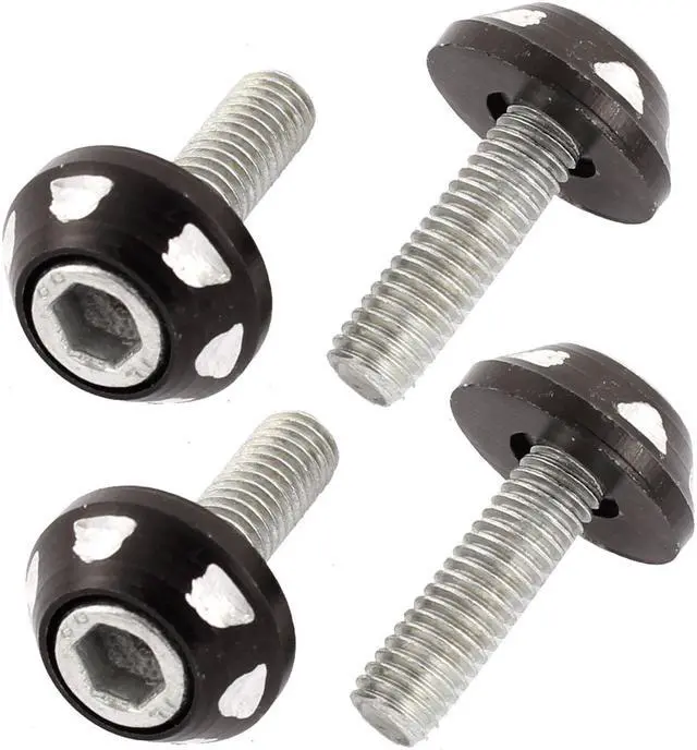 4 Pcs Black Head Round Cap Bolt Screw for Car License Plate 6mm Dia Thread