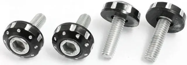 4 Pcs Silver Tone Black Alloy Round License Plate Frame Bolt Screw