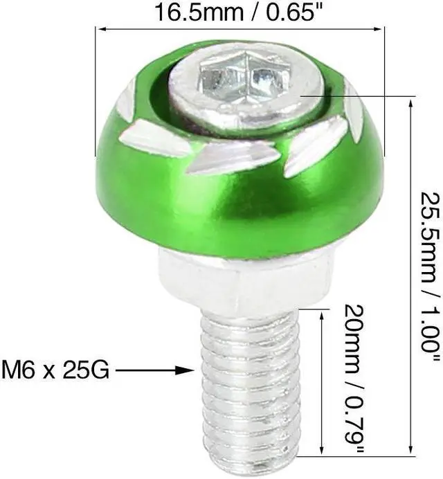 4pcs 6mm Metal Motorcycle License Plate Frame Bolt Screw Fastener Green