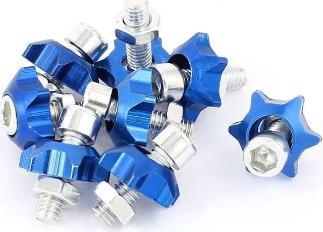 License Plate Star Shape Hex Bolt Screws Decoration Blue 8pcs