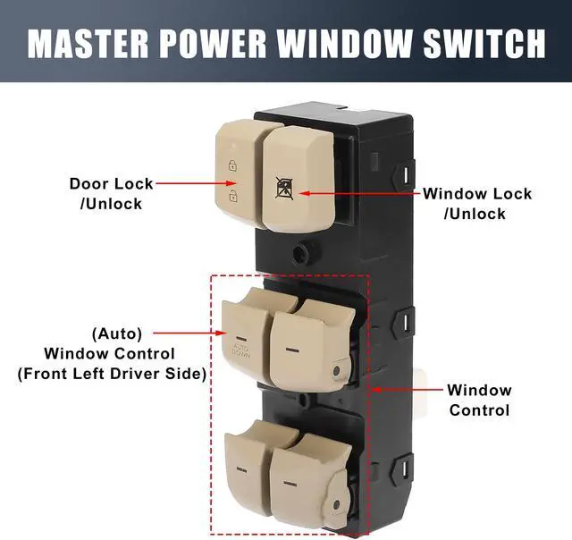 FunctionOur power window switch replaces driver side power window switch, controls all 4 power windows as well as the door locks and window lock.