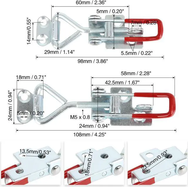 Car Adjustable Pull Latch Toggle Latch Clamp Hasp with Hole 100Kg 220Lbs Holding Capacity 2pcs
