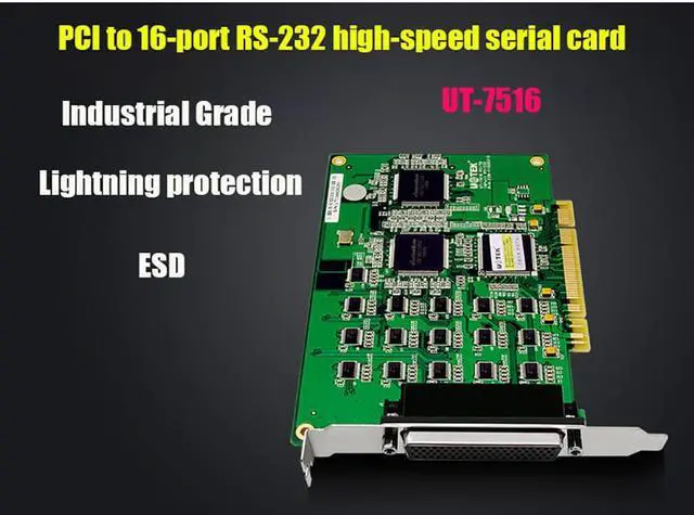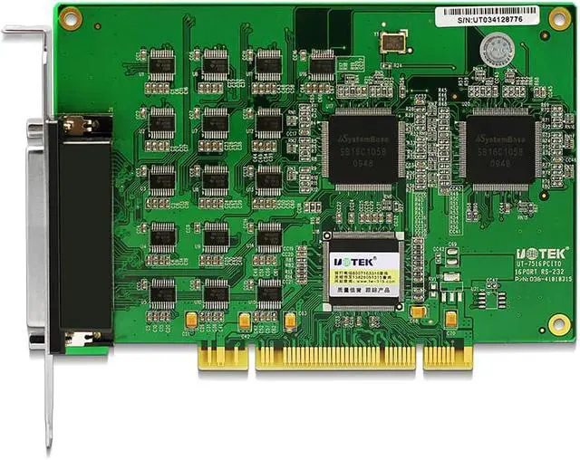 UT-7516 is a universal PCI serial card designed for POS, ATM and other applications that can be used in industrial automation system manufacturing and system integration. UT-7516 provides 16 RS-232 serial ports that can connect to a wide range of serial devices such as PC, terminals, modems, printers, scanners and more. Each port is capable of data rates up to 921.6K bps, providing modem control signals to ensure compatibility with serial device peripherals. the UT-7516 can operate under 3.3V and 5V PCI bus, allowing the multi-serial card to be installed in any available PC or server.