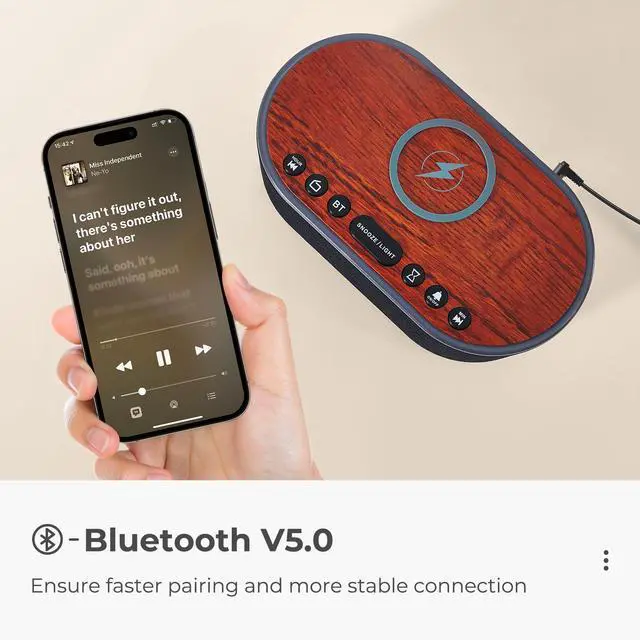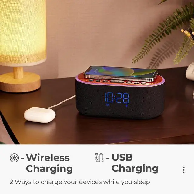 Wake up to 8 optional sounds (Birds Chirping Piano Flute Forest Wave Beep Buzzer Siren) or FM Radio.