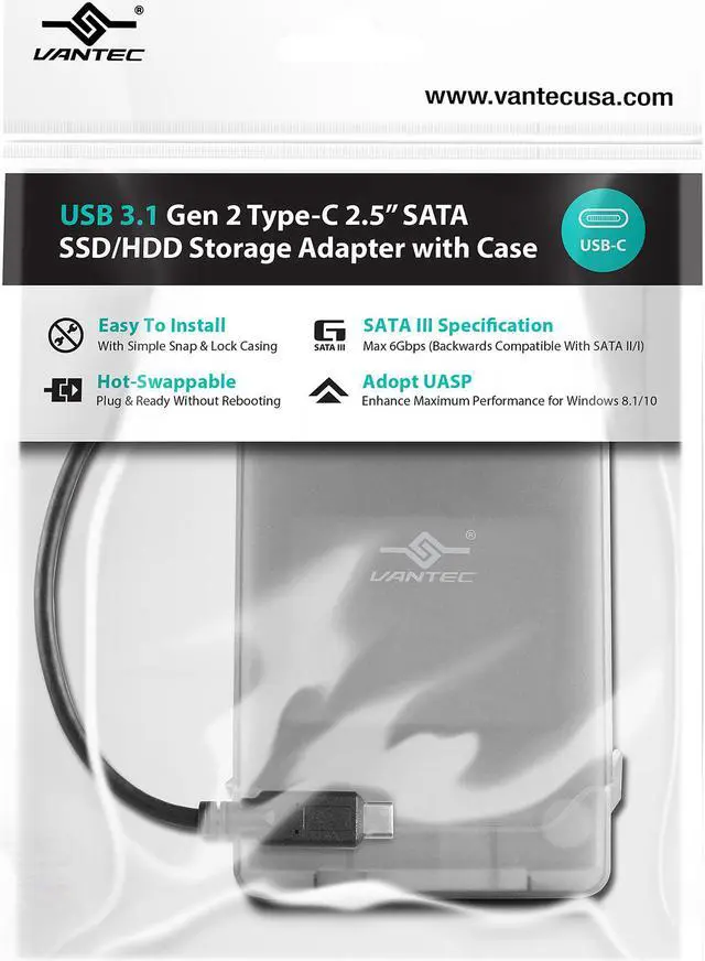 Adapter: Device Support: 2.5" Standard SATA I/II/III SSD/HDD HDD Capacity: Up to 2TB (Check www.vantecusa.com for updates) Power: USB Bus Powered Material: Plastic