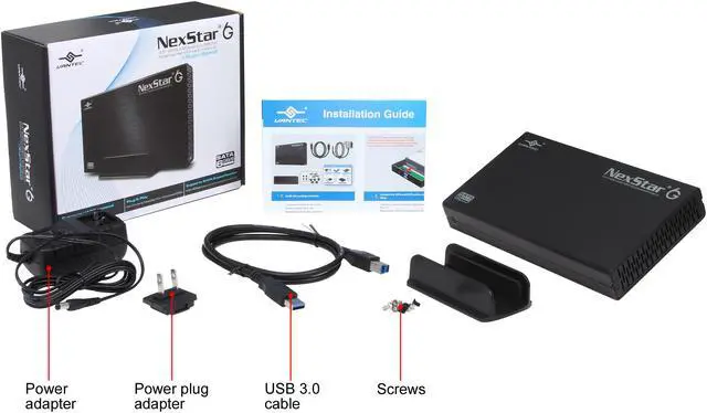 3.5" NexStar 6G Enclosure USB 3.0 cable AC Adapter Installation Guide Installation Screws