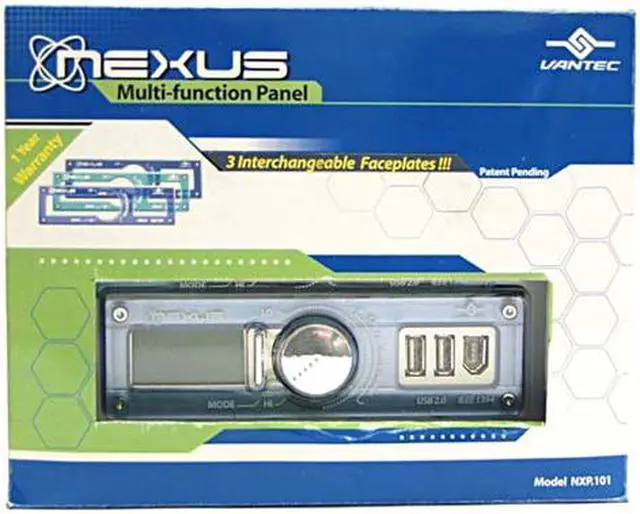 | Features | 3 Stylish Interchangeable Faceplates Adjustable CPU Fan Speed Controller System Temperature Monitoring Switch & LCD Display Audio Alarm Warning 2 USB Ports and 1 IEEE1394 (Firewire) Port Note: Nexus Multi-Function Panel (NXP-101) is only recommended for constant speed fans. |