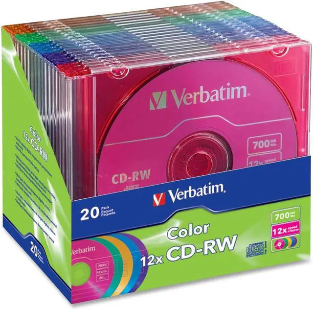 Verbatim 96685 700MB DataLifePlus CD-RWs with Color-Branded Surface, 20-ct Slim CasesCertified 4x-12x ultra speed rewrite compatibilityAdvanced Super-Eutectic Recording (Advanced SERL) technologyRewritable up to 1,000 timesRead compatible with multi-read CD & DVD drivesSuperior overwrite cyclability20-pk slim casesLimited lifetime warranty700MB DataLifePlus(R) CD-RWs with Color-Branded Surface, 20-ct Slim Cases