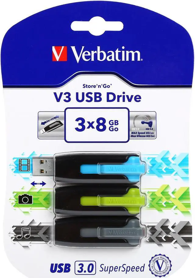Verbatim Store 'n' Go V3 8GB USB 3.0 Flash Drive (3-Pack, Gray, Green, & Blue/Black) 99125